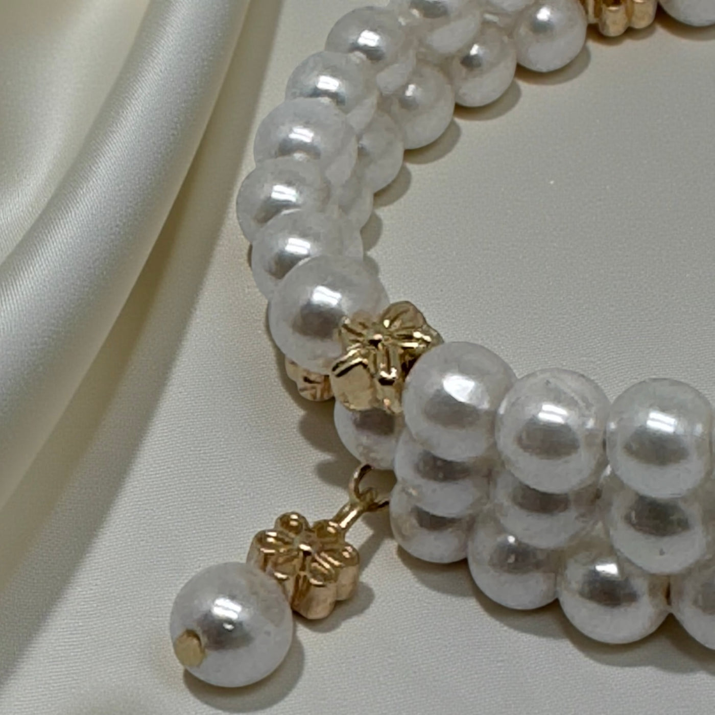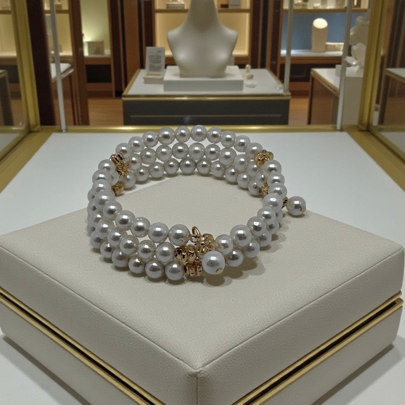 ✨ Bracelet Manchette Triple Rang à Mémoire de Forme – Perles 6 mm & Intercalaire Plaqué Or ✨