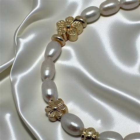 Chaque perle, délicatement nacrée, reflète la lumière avec une douceur naturelle qui sublime le poignet.