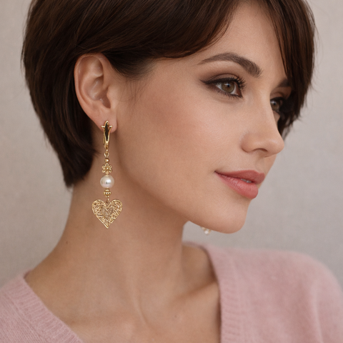 💛 Un bijou à l’élégance romantique, mêlant finesse artisanale et éclat doré, idéal pour illuminer un pull en cachemire poudré comme pour sublimer une tenue habillée.