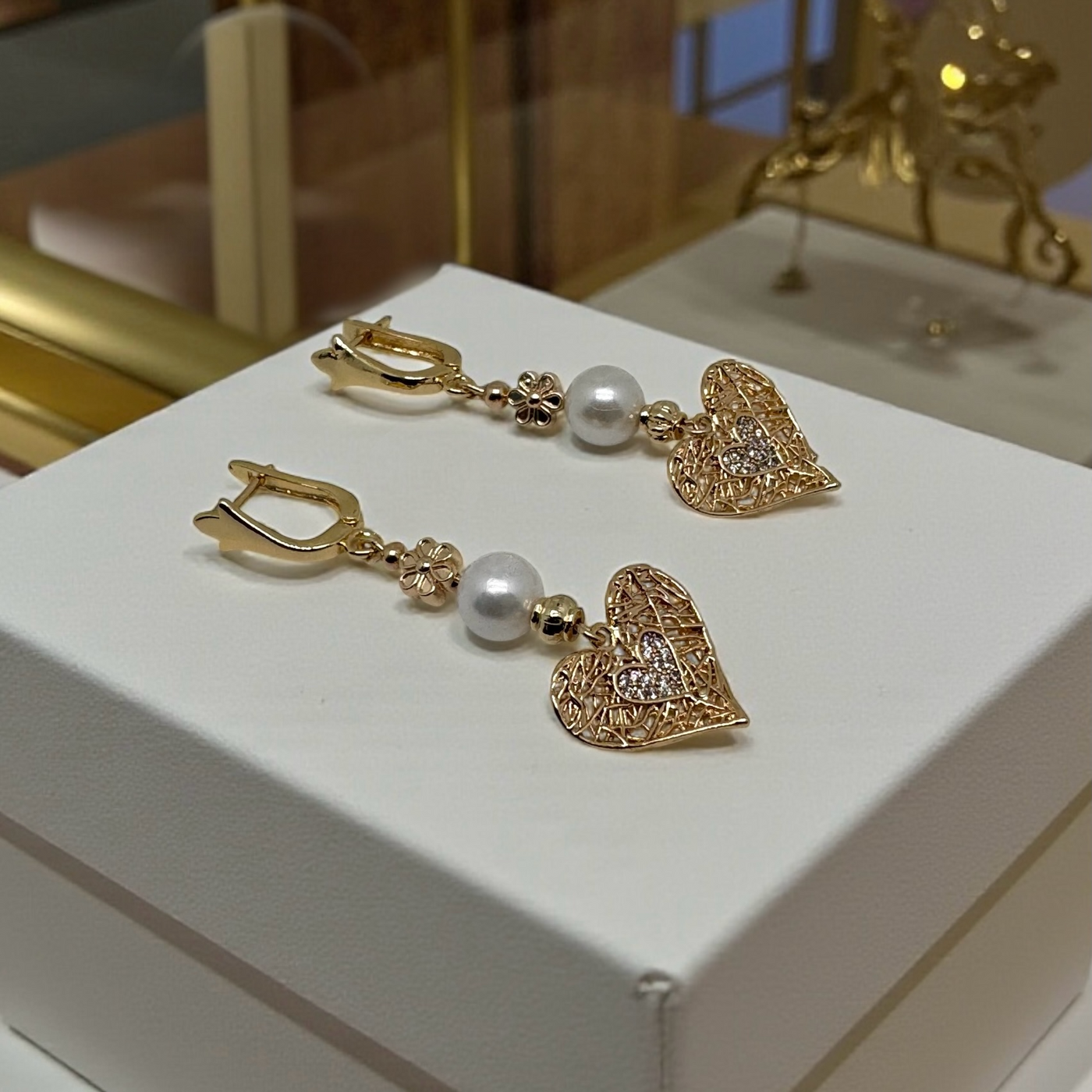 En point d’orgue, un cœur en fil doré tressé, délicatement façonné et enrichi de zirconiums, dévoile un jeu de textures sophistiqué. Son centre attire le regard et confère profondeur et caractère à la pièce.