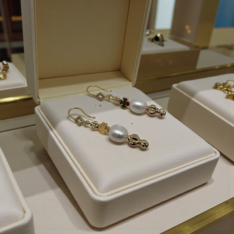 Laissez vous séduire par la grâce intemporelle de cette paire de boucles d’oreilles d’exception. D’une longueur délicate de 5 cm, elles mettent en majesté une somptueuse perle d’eau douce de 10 mm, au lustre soyeux et à l’éclat naturel. Les intercalaires plaqués or, subtilement rehaussés de strass scintillants, captent la lumière à chaque mouvement et apportent une touche de raffinement absolu.