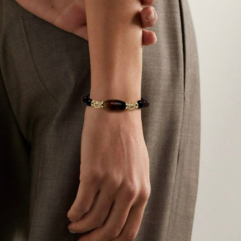 Puissant et raffiné, ce bracelet en pierres naturelles d’Œil de Taureau séduit par ses reflets profonds rouges et bruns, évoquant la force de la terre et l’énergie du feu intérieur. Chaque perle, minutieusement sélectionnée, révèle un éclat chaleureux et vibrant.