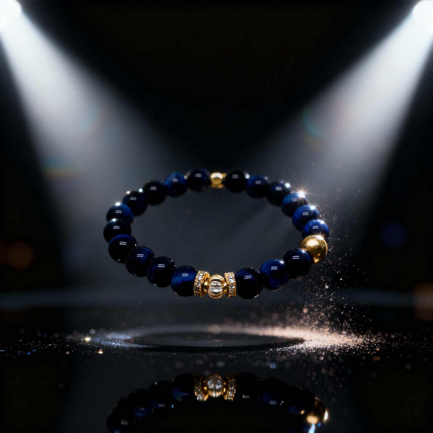Un intercalaire raffiné, plaqué or et orné de strass étincelants, vient sublimer l’ensemble, ajoutant une note de lumière et d’élégance à ce bijou d’énergie et de caractère.