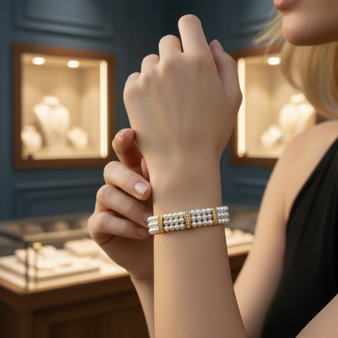 Bracelet triple rang, perle de coquillages 1278 En soldes