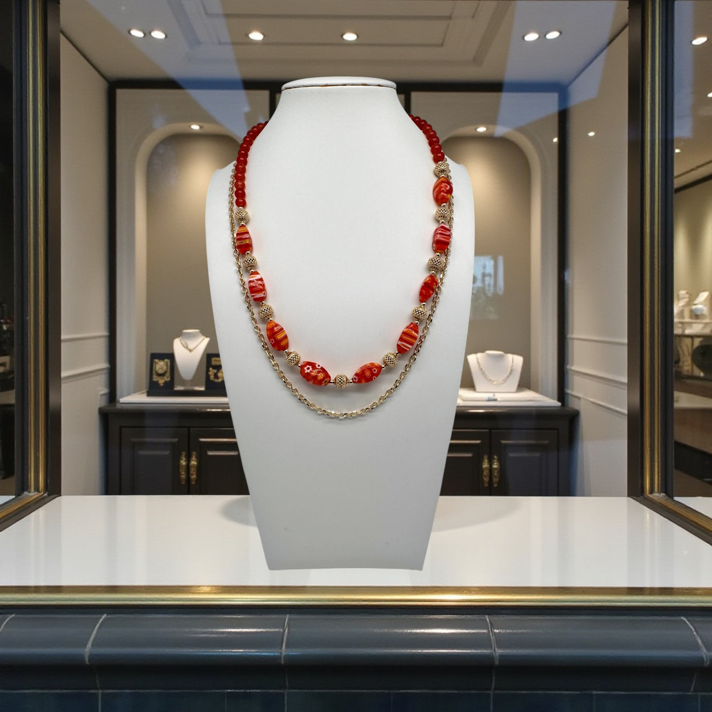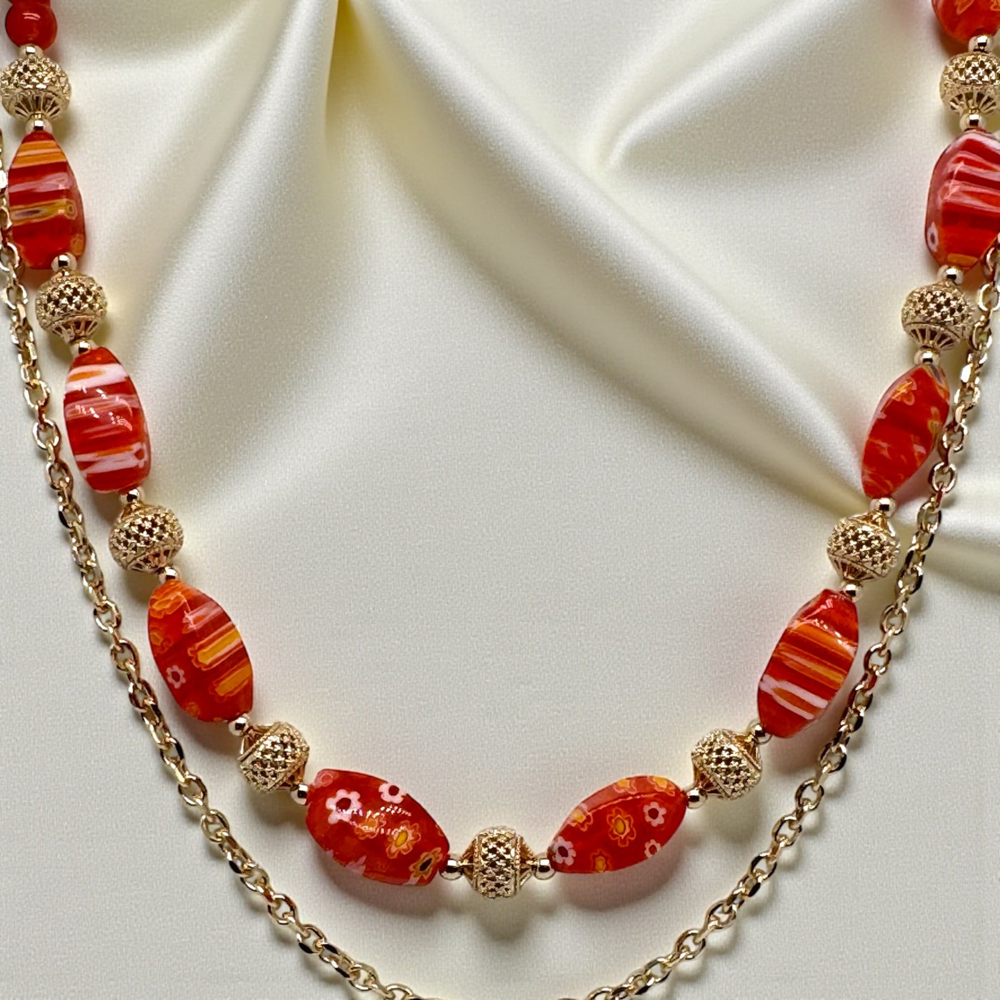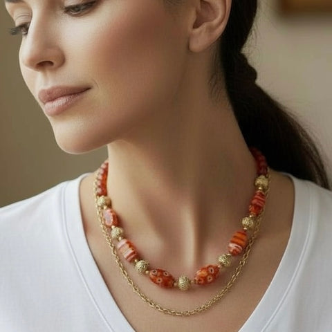 Collier cornaline et mille fleurs 2322 En soldes