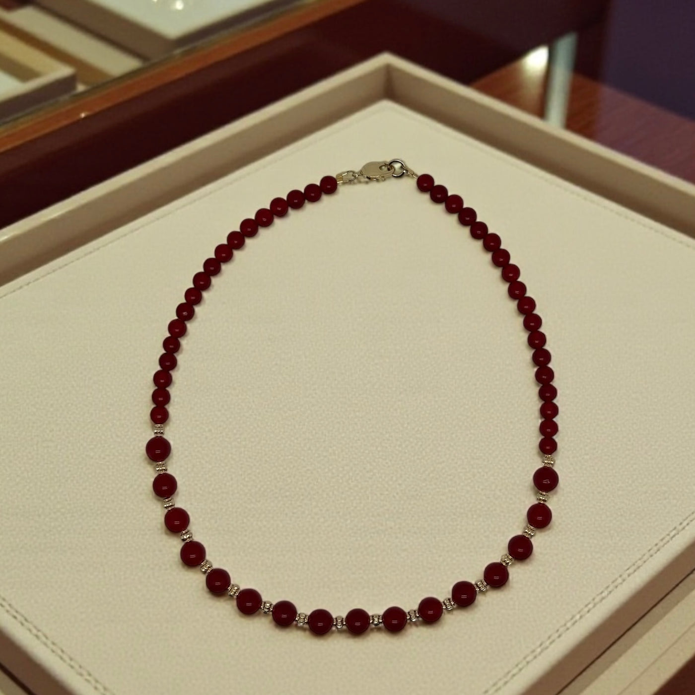 Laissez vous séduire par l’éclat envoûtant de ce collier en cornaline naturelle, une pierre rouge orangée vibrante, sélectionnée pour sa luminosité et son énergie chaleureuse. Chaque perle est mise en valeur par de fines perles intercalaires plaquées or, qui apportent une touche d’élégance et de raffinement. La fermeture mousqueton, elle aussi plaquée or, assure une finition soignée et durable.
