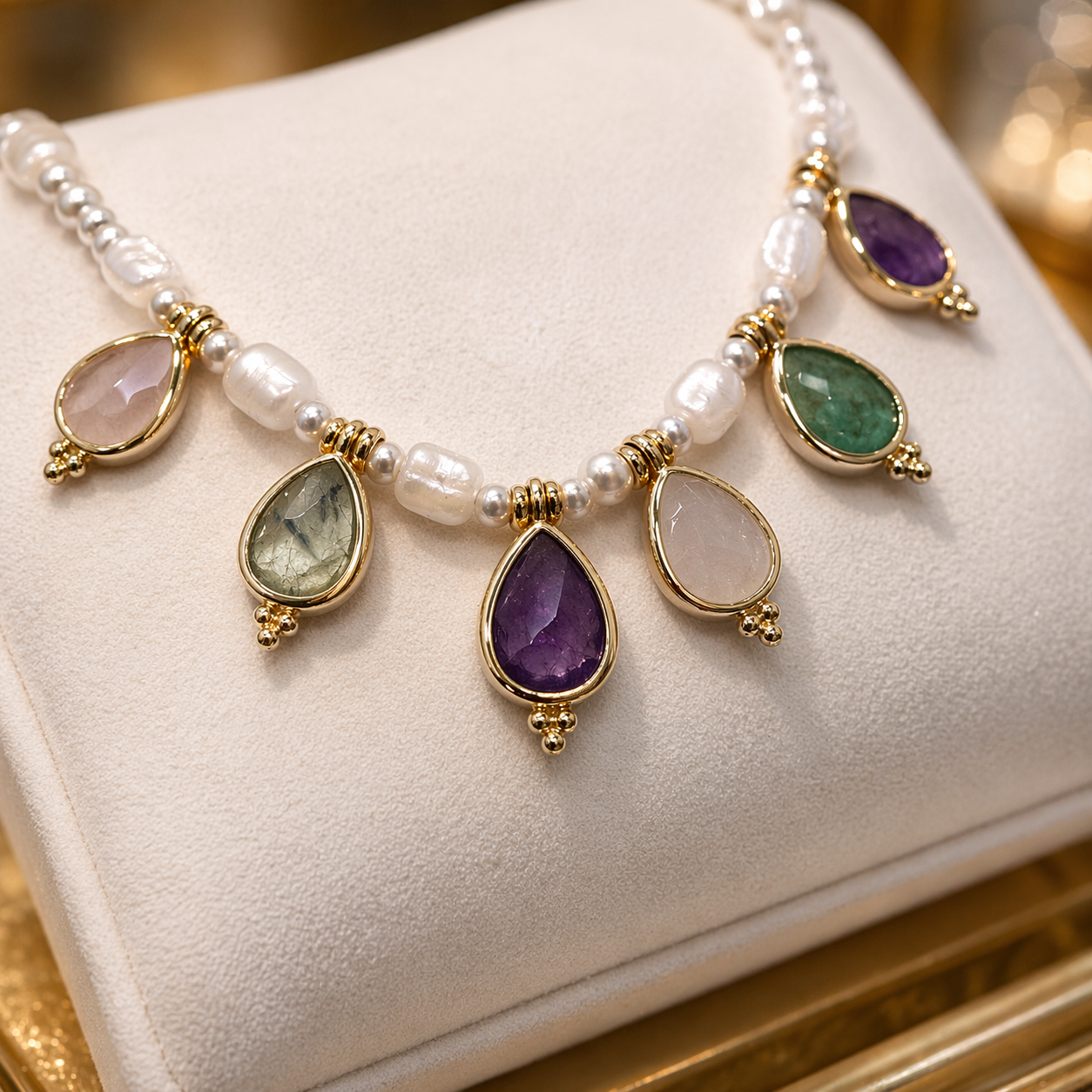 Collier perles et pierres naturelles facettées – Plaqué or | Bijou artisanal français