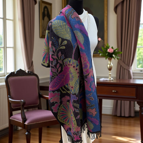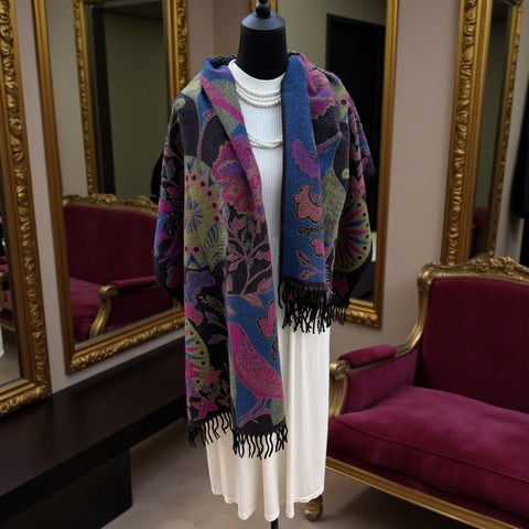 Drapée sur les épaules, nouée autour du cou ou portée comme un châle, cette étole apporte une touche de raffinement instantané. Les motifs d’oiseaux, élégants et poétiques, insufflent une note d’originalité tout en restant suffisamment discrets pour s’associer facilement à tous les styles — du plus classique au plus moderne.