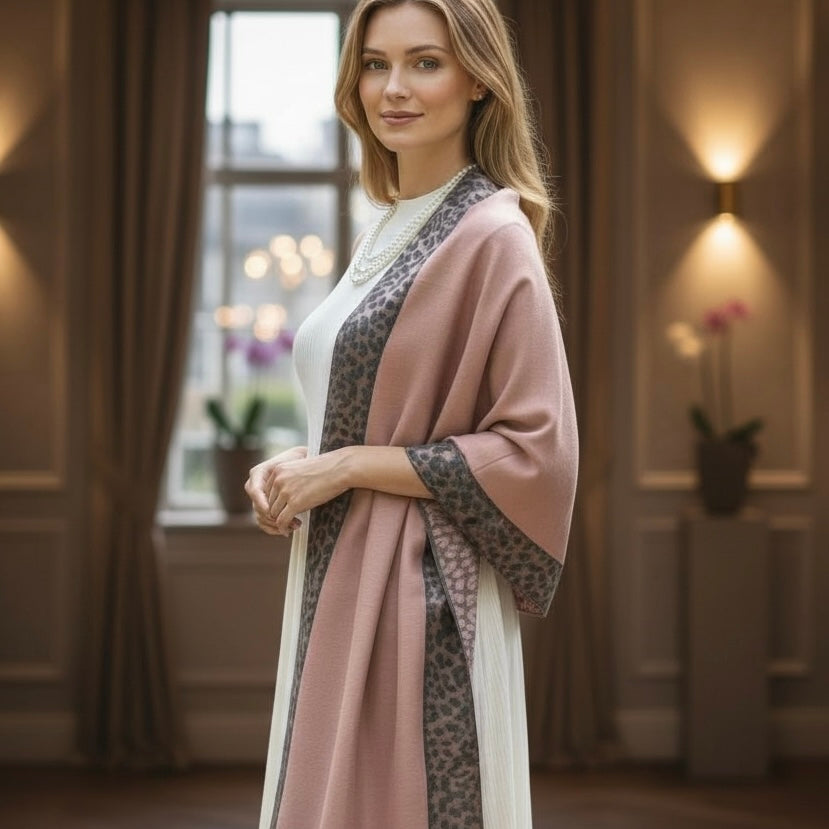 Étole rose et zèbre en pur cachemire 4098 En soldes