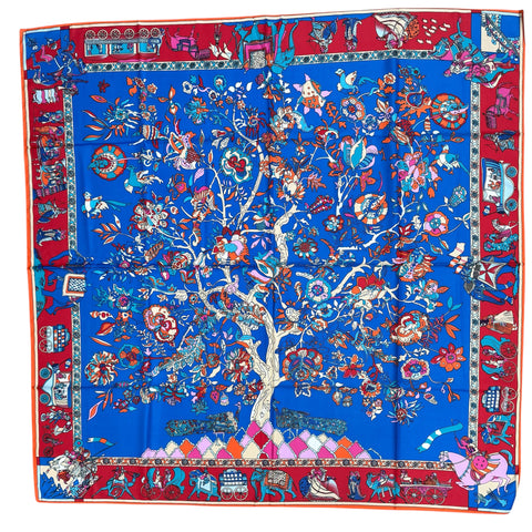 Plongez dans l’univers du luxe intemporel avec ce somptueux grand carré de soie, véritable œuvre textile inspirée du puissant symbole de l’Arbre de Vie. Ses nuances de bleu profond, à la fois mystérieuses et apaisantes, évoquent la sagesse, la profondeur de l’âme et l’harmonie intérieure.