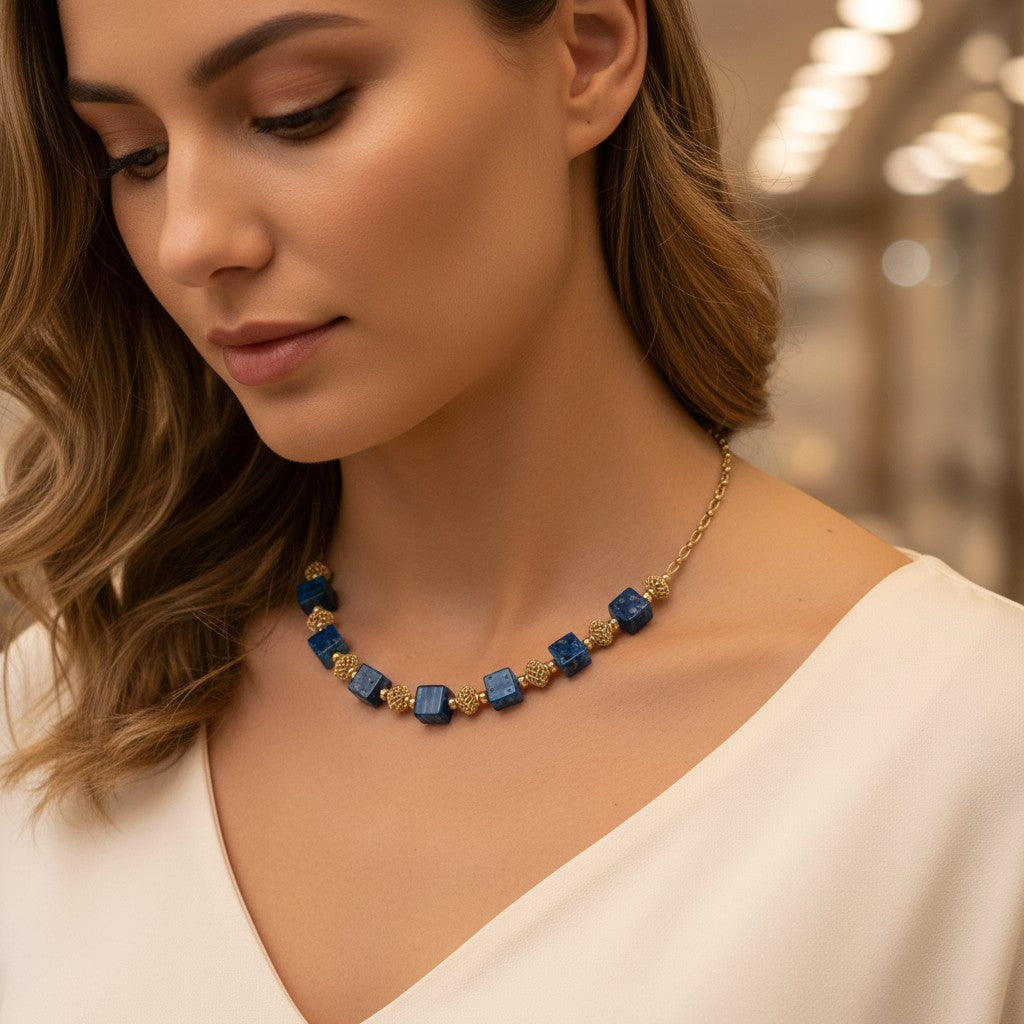 Un collier signature, audacieux et raffiné, destiné à celles qui aiment porter un bijou fort, lumineux et résolument élégant, façonné à la main avec passion et excellence. ✨