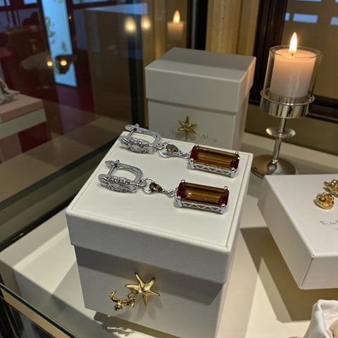 Cette paire de boucles d’oreilles en zultanite, d’une longueur de 45 mm, séduit par sa présence raffinée et son éclat subtil. La pierre, taillée en rectangle de 13 × 7 mm, capte la lumière avec intensité et révèle toute la magie du Sultani : une gemme fascinante capable de changer de couleur selon la luminosité, passant de nuances chaudes et miellées à des reflets plus profonds et sophistiqués. Chaque mouvement révèle une nouvelle facette, rendant la pièce vivante et résolument luxueuse.