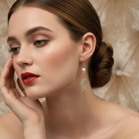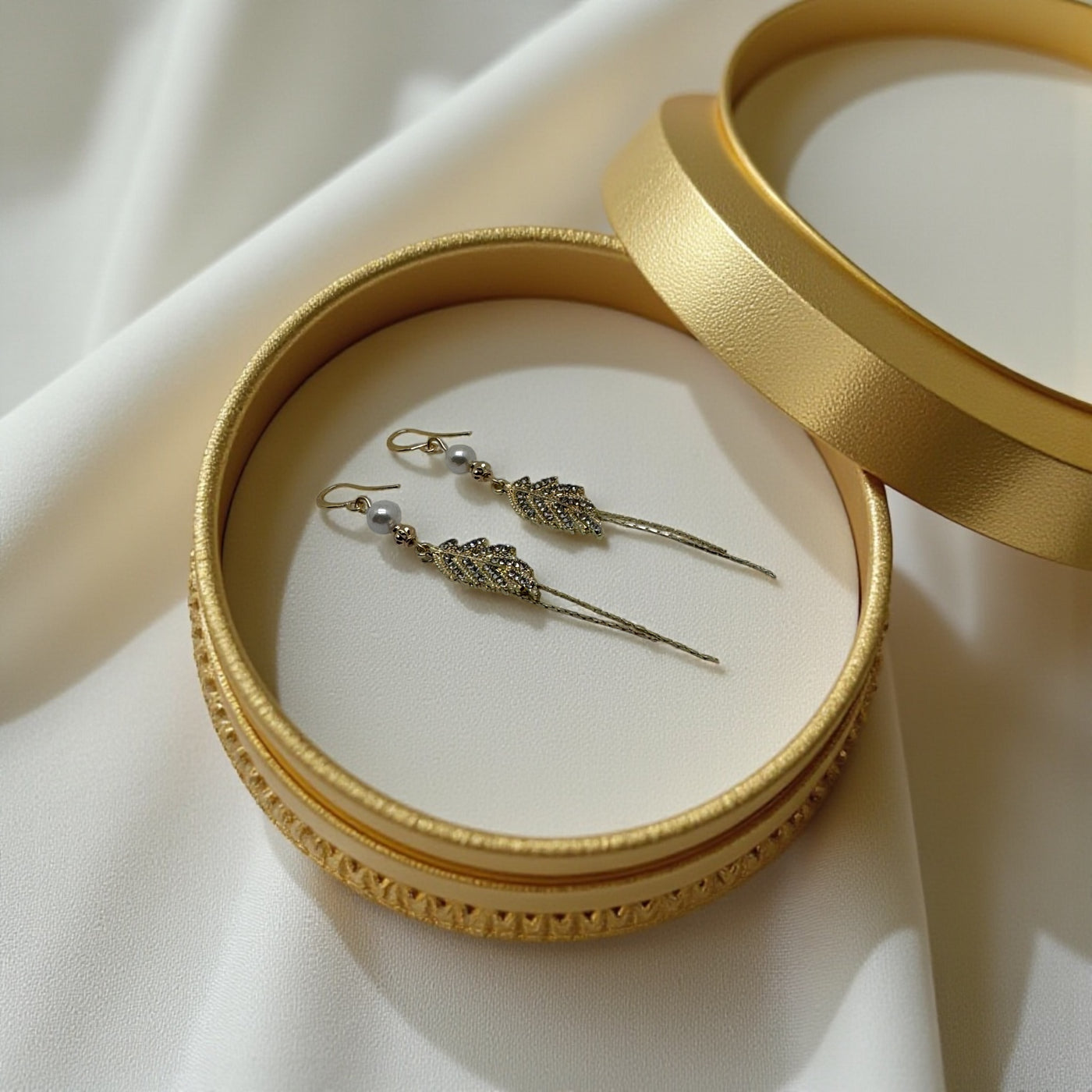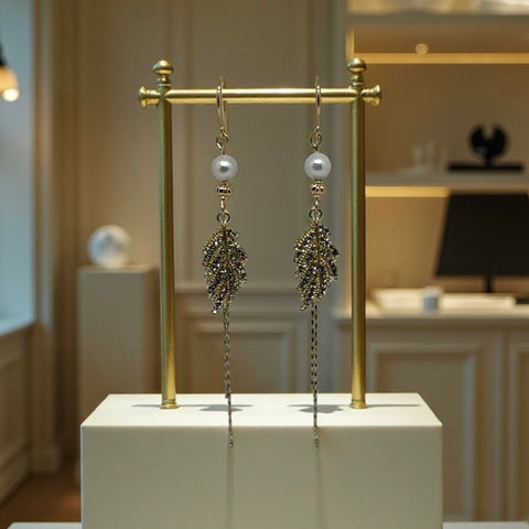 Symbole d’élégance intemporelle et de pureté, la perle de culture incarne la féminité apaisée, la douceur intérieure et la sérénité de l’esprit. Associée à une feuille dorée finement ouvragée, rehaussée de strass scintillants, elle évoque la beauté délicate de la nature sublimée par la lumière.
