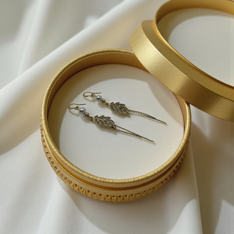 Boucles d’oreilles “Éclat Naturel” – Perle de culture & feuille dorée