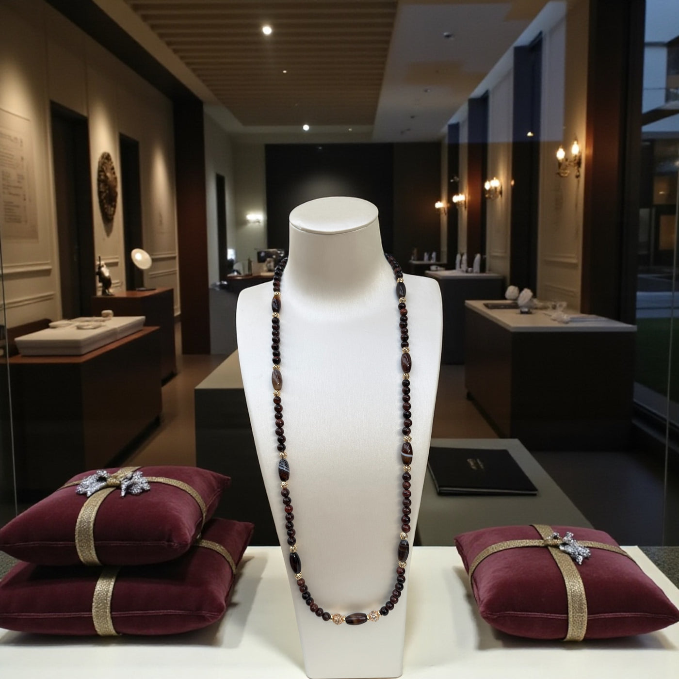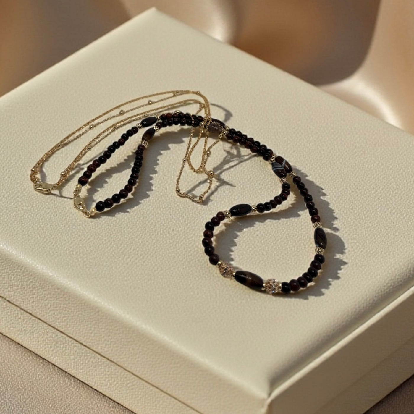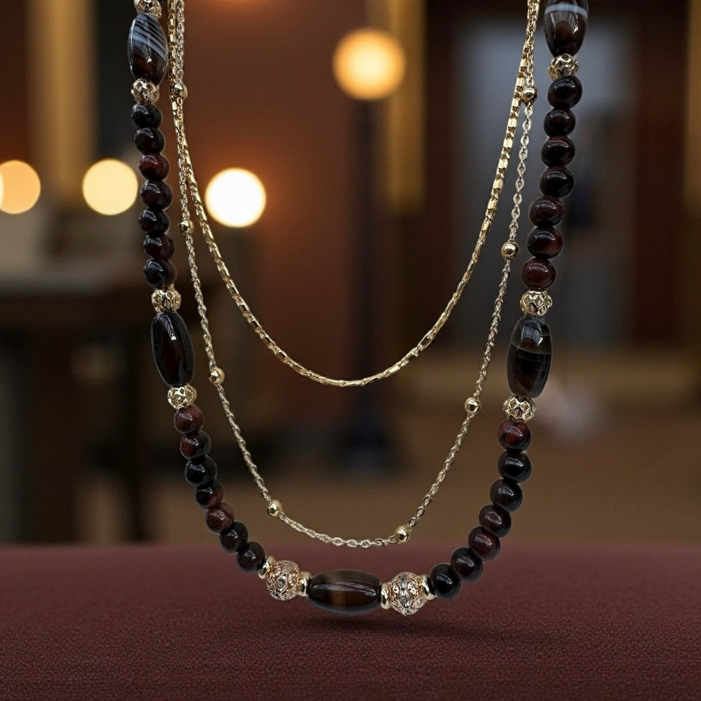 Collier modulable en Œil du Tigre Rouge et Agate – Élégance, énergie et protection