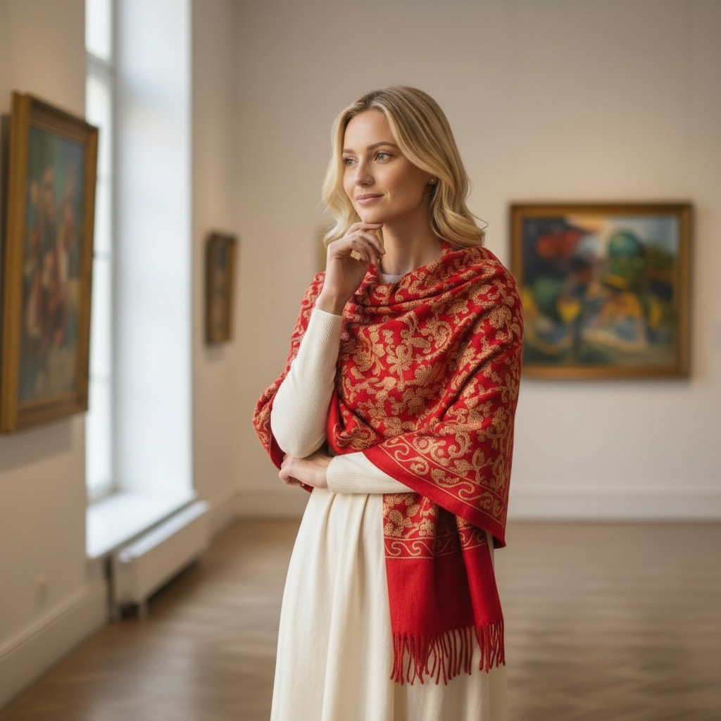 Écharpe en pur cachemire et broderie au fil d’or 4084