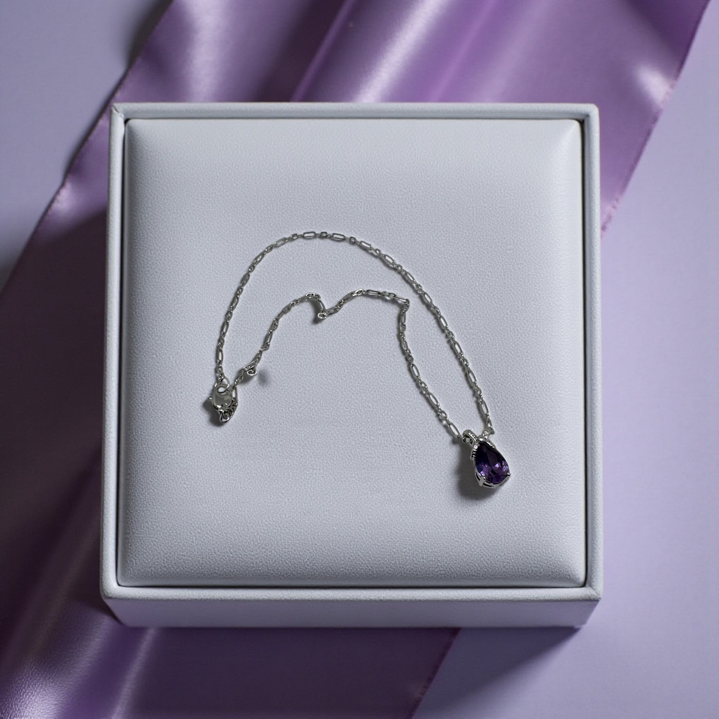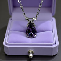 Laissez-vous séduire par ce pendentif en améthyste naturelle, taillée en gracieuse forme de poire, dont les reflets violets captent la lumière avec une douceur envoûtante. La pierre, mise en valeur par deux délicats zirconium scintillants, évoque à la fois la pureté et la féminité. Le tout est harmonieusement monté sur une chaîne en argent qui souligne l’éclat du bijou sans jamais l’éclipser.