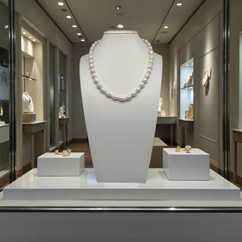 Affirmez votre style avec ce somptueux collier en perles d’eau douce de 10–11 mm, aux volumes généreux et à l’éclat naturellement lumineux. Chaque perle révèle des nuances subtiles et une texture vivante, faisant de ce bijou une pièce d’exception, à la fois intemporelle et résolument raffinée. Son fermoir plaqué or apporte une touche précieuse et élégante, parfaitement équilibrée.